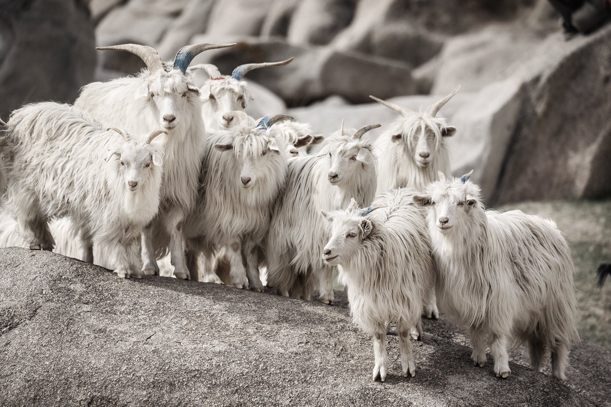 Cashmere wool is collected during the spring moulting season when the goats naturally shed their winter coat.